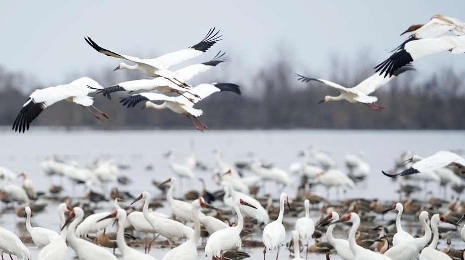 White cranes pictured at wetland reserve in Shangrao, China's Jiangxi